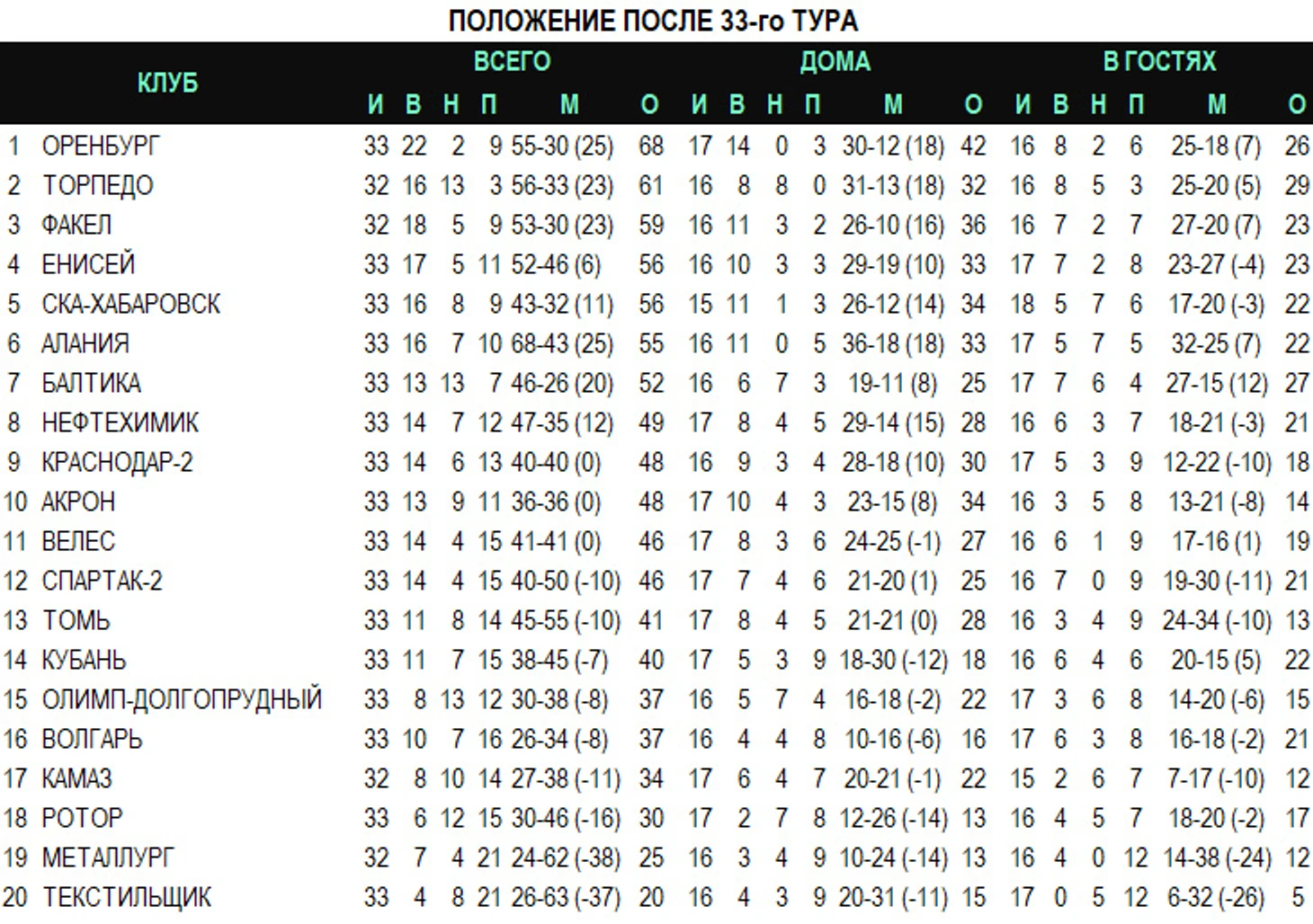«Факел» гонится за «Торпедо», «Енисей» не остановить, «Алания» и Хабаровск отставать не собираются. Обзор 33-го тура ФНЛ