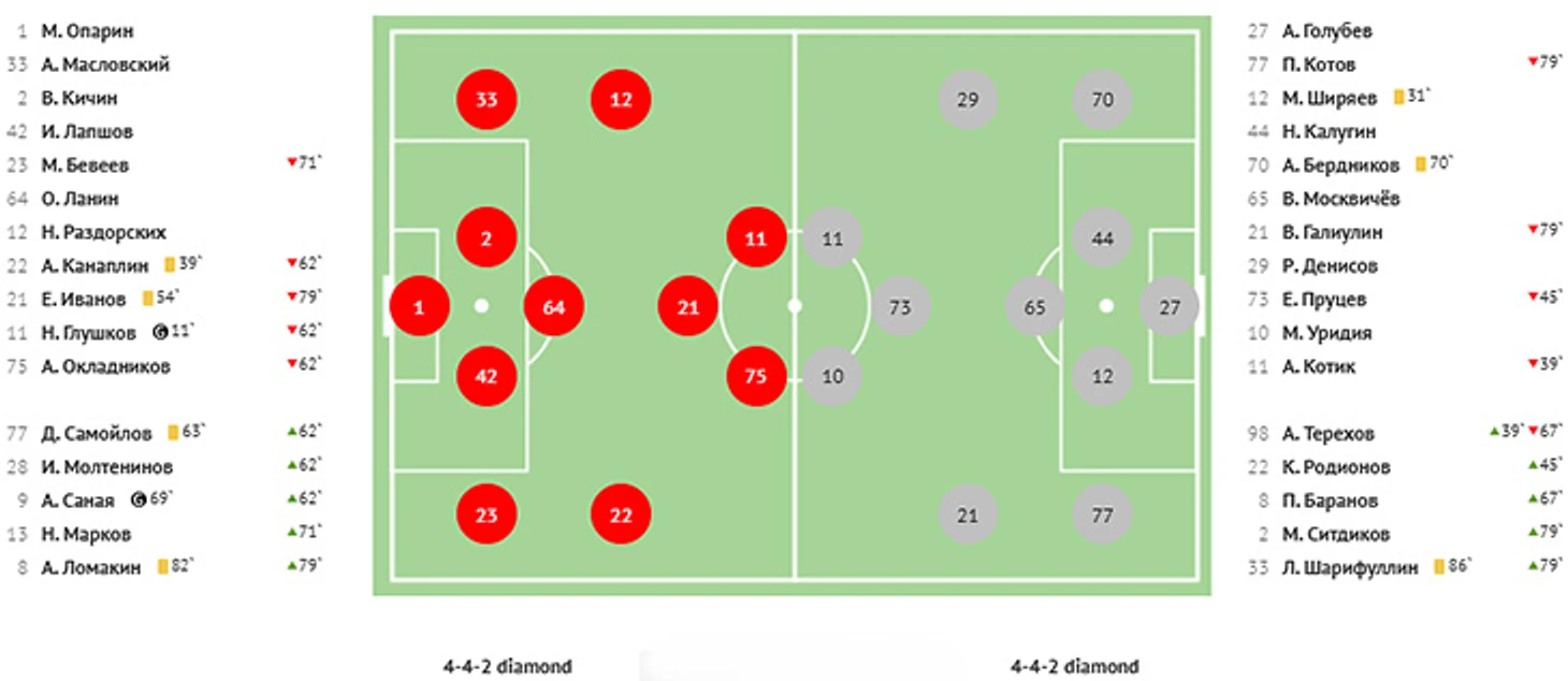 Голы: Глушков, 11 (1:0), Саная, 70 (2:0). Красноярск. Футбол-Арена «Енисей». 2400 зрителей.