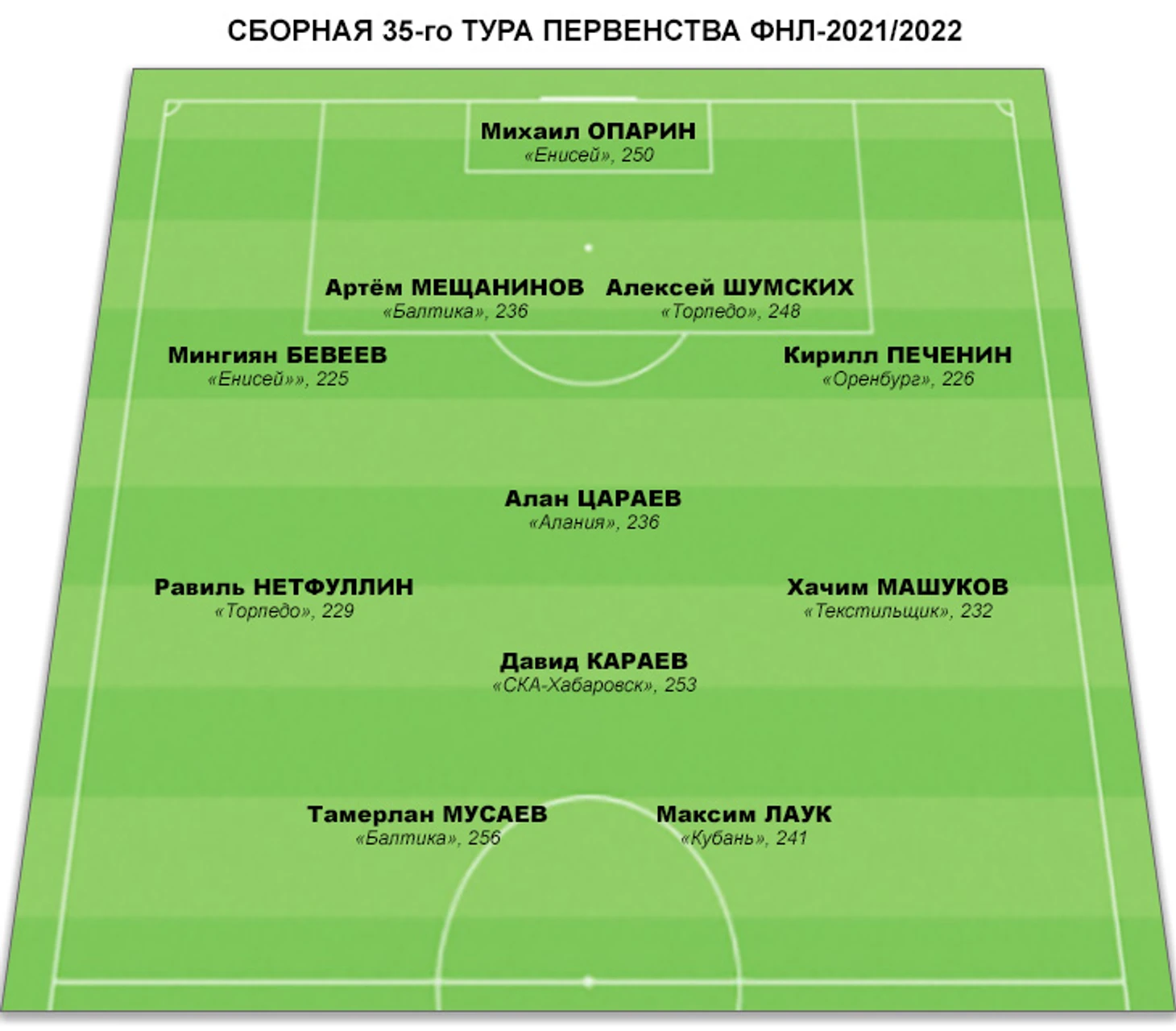 Сборная 35-го тура ФНЛ. По два представителя «Торпедо», «Енисея» и «Балтики»