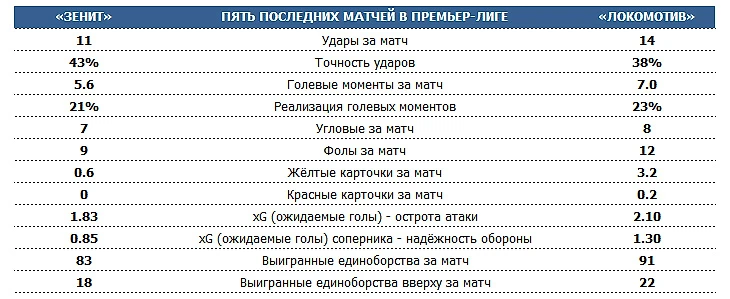 🕮 Факты: ◉ Из 18 последних матчей с «Зенитом» на чужом поле «Локомотив» выиграл лишь один – в октябре 2017 года. ◉ «Зенит» выиграл на своём поле в РПЛ семь матчей подряд, а первый тайм на своём поле выигрывает пять матчей подряд. ◉ На своём поле в РПЛ «Зенит» забивает 35 матчей подряд. В последний раз сыграть в Питере в обороне на ноль удалось в марте 2020 года «Уфе» (ничья 0:0). ◉ 10 побед подряд одержал «Зенит» в домашних матчах против московских команд (мячи 35–8). В последний раз столичной команде удалось увезти из Санкт-Петербурга хотя бы ничью в феврале 2020 года. Причём сделал это как раз «Локомотив». ◉ Лишь в одном из 10 последних матчей РПЛ на выезде «Локомотиву» удалось сохранить свои ворота «сухими».
