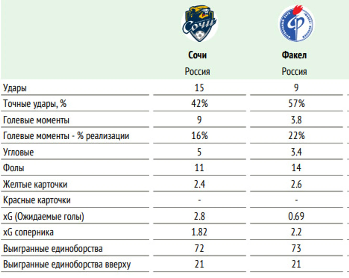 ⚖ Баланс матчей «Сочи» и «Факела» в чемпионатах России: не играли.
