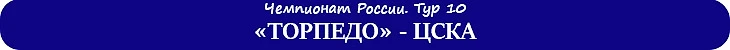 ⚖ Баланс матчей «Торпедо» и ЦСКА в чемпионатах России: суммарный: +9=6-15, мячи 39:47 на поле «Торпедо»: +4=2-9, мячи 19:26 последние пять матчей «Торпедо» и ЦСКА на поле «Торпедо» – 3:2, 0:1, 0:2, 2:2, 0:2.