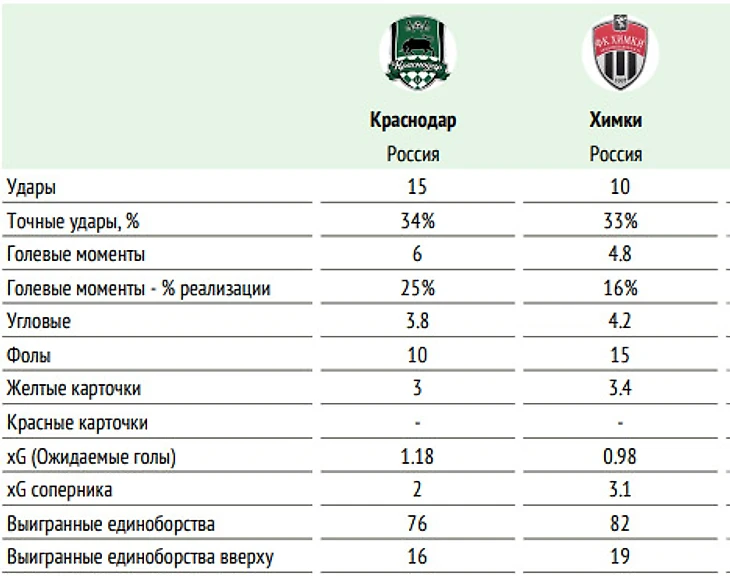 ⚖ Баланс матчей «Краснодара» и «Химок» в чемпионатах России: суммарный: +1=1-2, мячи 10:7 на поле «Краснодара»: +1=0-1, мячи 7:3 последние два матча «Краснодара» и «Химок» на поле «Краснодара» – 7:2, 0:1.