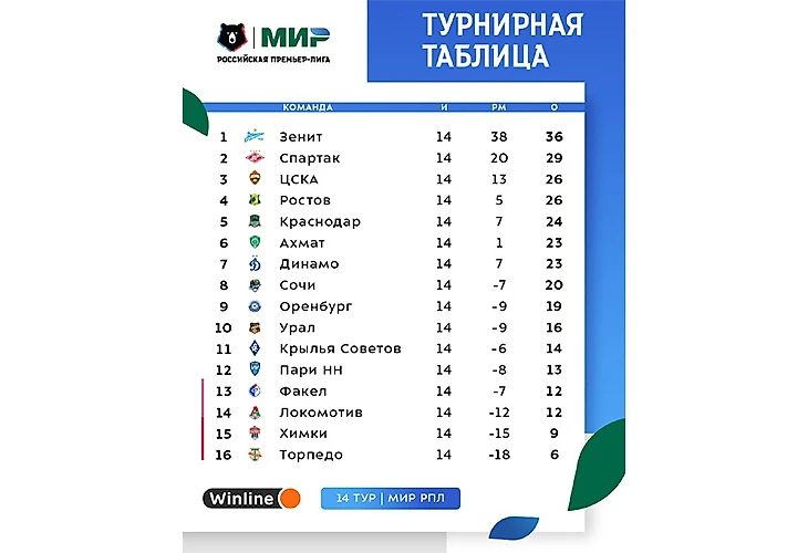 🕮 Факты: ◉ «Зенит» - единственная команда этого сезона, ещё не познавшая горечи поражений. ◉ «Зенит» побил рекорд «Ротора» 90-х годов, забив в 41-м домашнем матче РПЛ подряд. Также питерцы впервые в своей истории выиграли 13 домашних матчей подряд в чемпионате России. ◉ «Зенит» установил новый рекорд чемпионата России по голам после первых 14 туров сезона, забив 43 мяча. Предыдущий рекорд принадлежал «Спартаку» образца 1993 года (37 забитых мячей). ◉ У «Зенита» беспроигрышная домашняя серия стала длиной в 17 матчей. ◉ «Зенит» забивает десять туров подряд – после ничьей 0:0 в Грозном. ◉ При судействе Евгения Кукуляка «Зенит» не проиграл ни одного из восьми матчей.