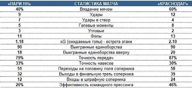 «ПАРИ НН» - «КРАСНОДАР» - 0:2