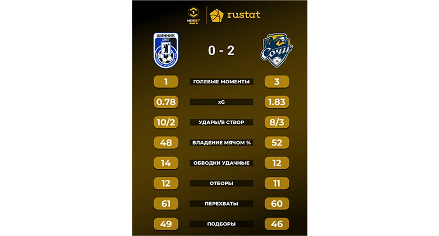 Второй тайм южане отыграли на удержание счёта, стараясь не давать сопернику мяч. Новая ошибка обороны хозяев значительно облегчила им выполнение задачи. После обычного навеса Анатолия Макарова защитник «Шинника» Артур Черный головой срезал мяч в штангу собственных ворот, а первым на отскоке оказался сочинец Руслан Барт, которому не составила труда увеличить разрыв в счёте.