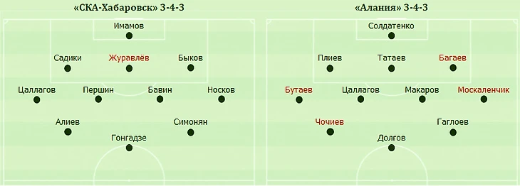 Хозяева поля сильно удивили своей пассивностью. Не сказать, что «Алания» атаковала ярко, но преимущество в два гола к перерыву вполне заслужила. Первый гости забили в быстрой атаке, точку в которой ударом с разворота поставил Тарас Гаглоев. А затем Павел Долгов получил передачу на ход недалеко от штрафной «СКА-Хабаровск» и в борьбе с двумя защитниками перебросил мяч через опрометчиво двинувшегося навстречу и застрявшего в полупозиции вратаря Ислама Имамова.