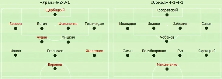 «Урал» (Екатеринбург): Щербицкий, Бевеев, Филипенко, Бегич, Гогличидзе, Чудин (Ишков, 46), Ионов (Аюпов, 71), Егорычев, Мишкич (Эммерсон, 84), Железнов (Порохов, 71), Воронов (Каштанов, 55). «Сокол» (Саратов): Косаревский, Молодцов, Иванов, Забелин, Синяк, Гуз (Бабаев, 75), Сасин (Чуриков, 81), Полубояринов (Саадуев, 65), Чобанов (Капленко, 81), Максименко (Ермолин, 75), Карпицкий. Наказания: Синяк, 86. Бегич, 90+2 (предупреждения). Судья: Егоров (Нижний Новгород). 3 августа. Екатеринбург. Стадион «Екатеринбург Арена». 10 545 зрителей.