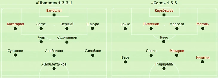 В первом тайме игра была равной, но чуть больше повезло гостям, сумевшим заработать пенальти. Молодой защитник ярославцев Артемий Косогоров сбил молодого нападающего сочинцев Кирилла Никитина, и капитан гостей Марсело чётко реализовал одиннадцатиметровый. Всё бы ничего, но контакт между игроками случился до штрафной, а в нее сочинец, которому заплели ноги, влетел по инерции.