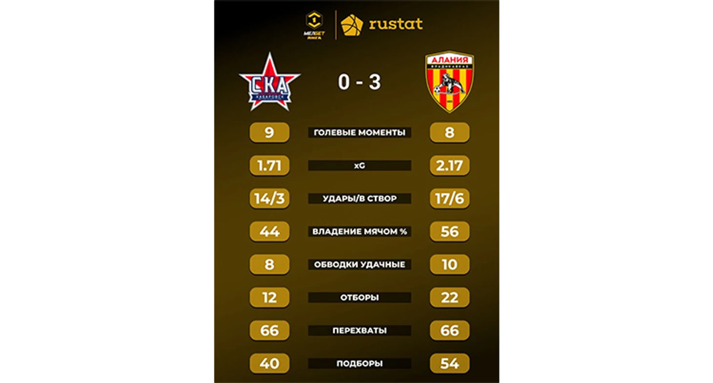 ● Из восьми последних матчей с «Аланией» «СКА-Хабаровск» выиграл лишь один. ● «СКА-Хабаровск» потерпел второе поражение с крупным счётом. В первом туре дальневосточников разгромило «Торпедо» - 4:0. ● В матчах этого сезона с участием «Алании» тот, кто забивает гол, обязательно выигрывает.