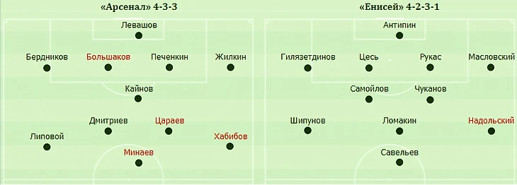До перерыва лучше смотрелся «Арсенал», но не настолько, чтобы повести в счете. «Енисей» же сознательно избрал игру вторым номером, при этом проводя отменно расчерченные контратаки, первая же из которых закончилась голом.