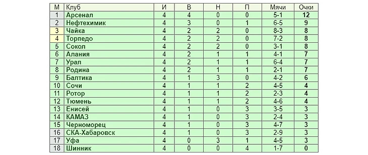 После четырёх туров первенства ФНЛ на первом месте закрепился тульский «Арсенал» - единственная команда, набравшая 12 очков из 12 возможных.