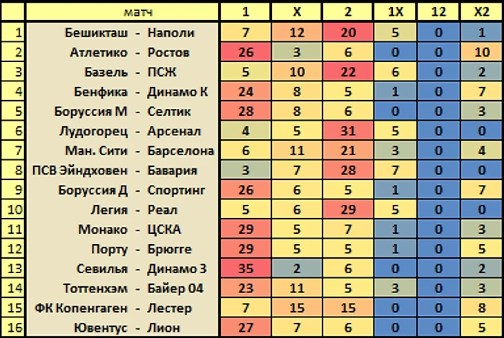 На данный момент завершились 16 матчей: