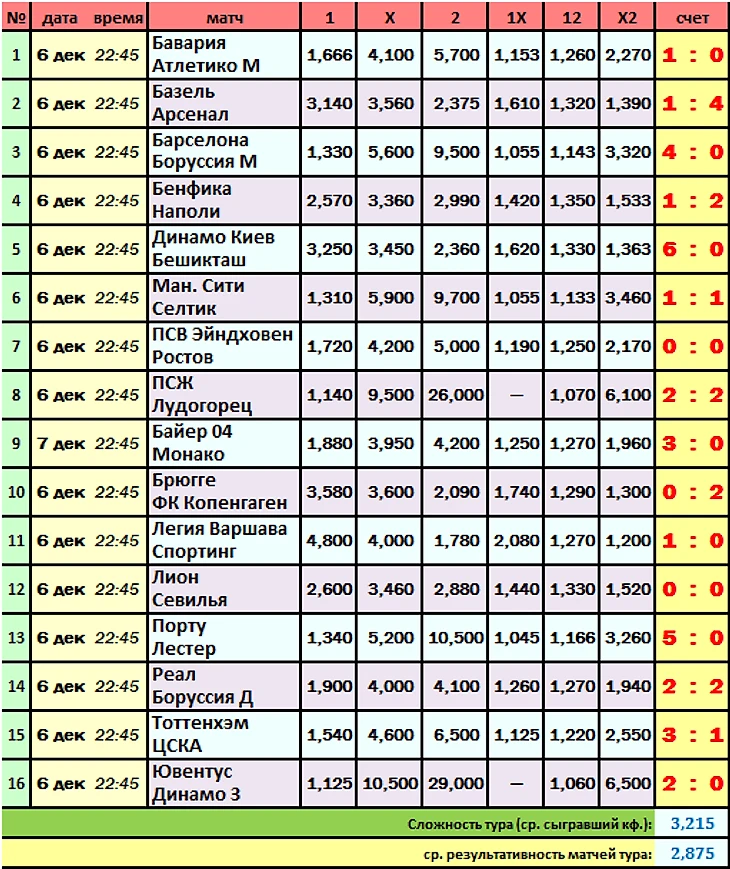 P.S. Следующий тур состоится на матчах Лиги Европы 08 декабря 2016г., пост с приемом прогнозов выйдет в среду 7 декабря в первой половине дня.