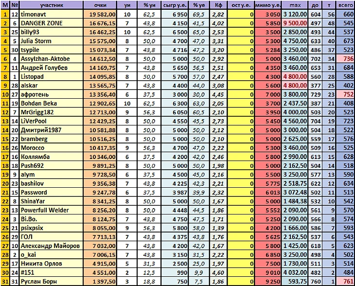 Кто как угадывал можно увидеть тут: скрин (свой номер можно увидеть в турнирной таблице тура в столбце "№")
