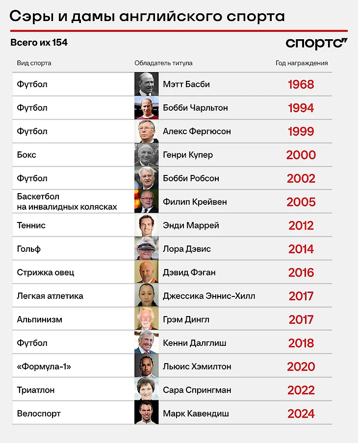 Перед Новым годом королевский сайт Британии опубликовал список из 1200 фамилий – все они награждены Орденом Британской империи. Всего у него пять степеней, и звание сэра или дамы получают обладатели I и II степени. Остальные именуются почетными кавалерами.