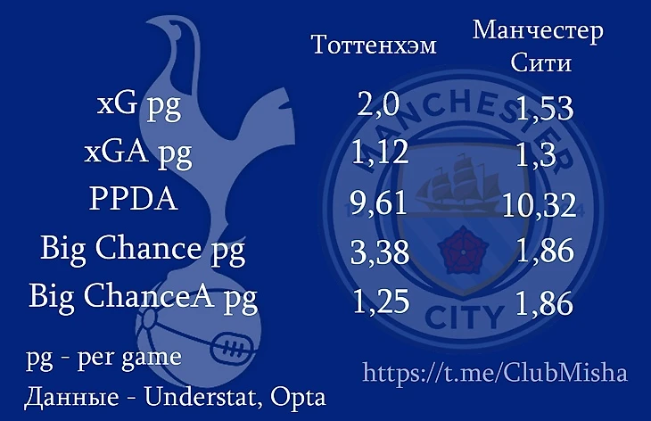 Скорее всего, команды смогут нейтрализовать сильные стороны соперника. «Тоттенхэм» и «Сити», – две из пяти команд с девятью пропущенными мячами, – лучший показатель в лиге. «Тоттенхэм» пропустил с игры только дважды, «Сити», – трижды. Наибольшую угрозу в такой ситуации представляют переходы мяча и стандарты.