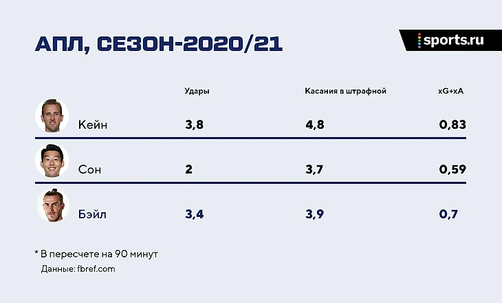 С другой, это делало команду предсказуемой. Если кого-то из них подводила реализация, это сразу же сказывалось. Яркие примеры – матчи с «Ньюкаслом» и «Фулхэмом». В первом случае Кейн нанес 8 ударов, не реализовал 2 явных момента при 1,51 xG. Во втором не забивал уже Сон: 4 удара, 4 явных момента, 1,5 xG и 0 голов. В обоих случаях «Тоттенхэм» имел громадное преимущество по моментам, но упускал победу в концовке. С Бэйлом вероятность таких ситуаций сильно ниже.