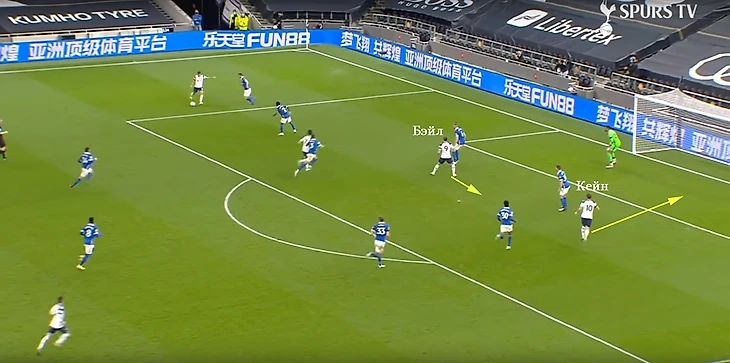 В качестве примера подойдет еще осенний матч с «Брайтоном», но вы могли это увидеть и в недавних играх с «Бернли» и «Кристал Пэлас». Здесь Бэйл отклеился от Уэбстера, остался один в штрафной. Секундная потеря концентрации Уэбстером стоила «Брайтону» очков. Бэйл забил сам, а на дальнюю штангу набегал Кейн.