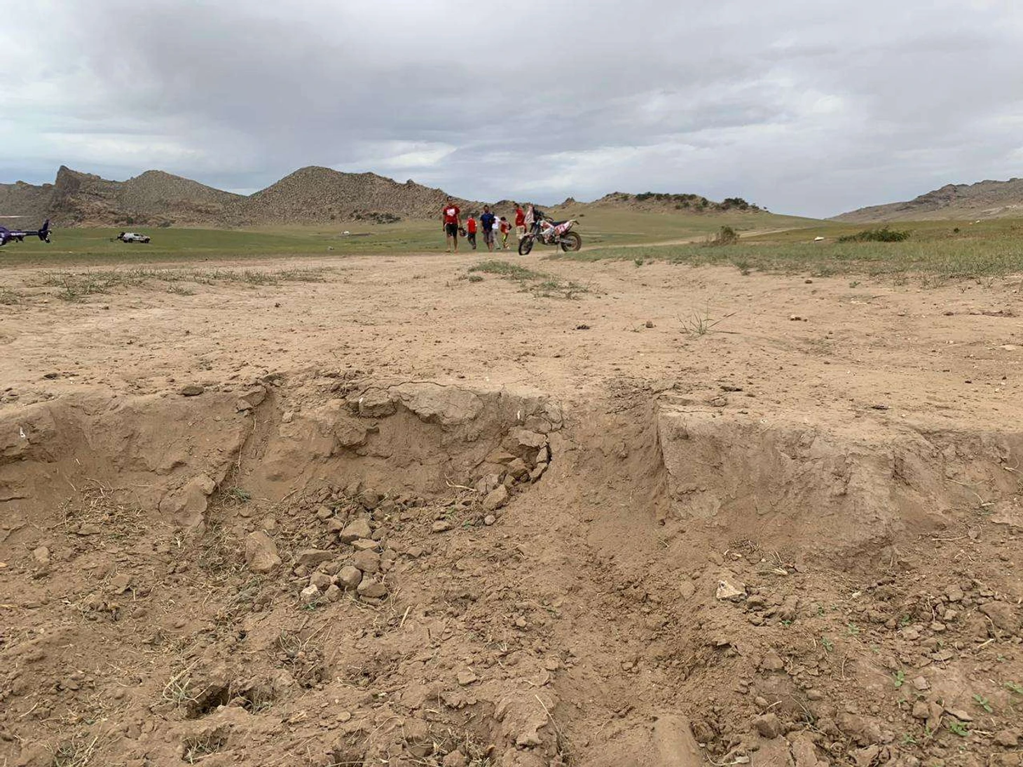 «Где-то километров через 10 после зоны дозаправки я так увлеклась пилотированием по этим ходовым дорожкам, что по собственной вине прозевала в дорожной книге пометку «Яма 3», – объяснила аварию Нифонтова. – На середине дороги оказалась приличная промоина со стеночкой, и я на всем ходу, успев только чуть-чуть приподнять мотоцикл, ударилась в эту стенку низом мотоцикла и меня оттуда катапультировало… Ключица точно сломана – возможно, придется собирать ее болтами».