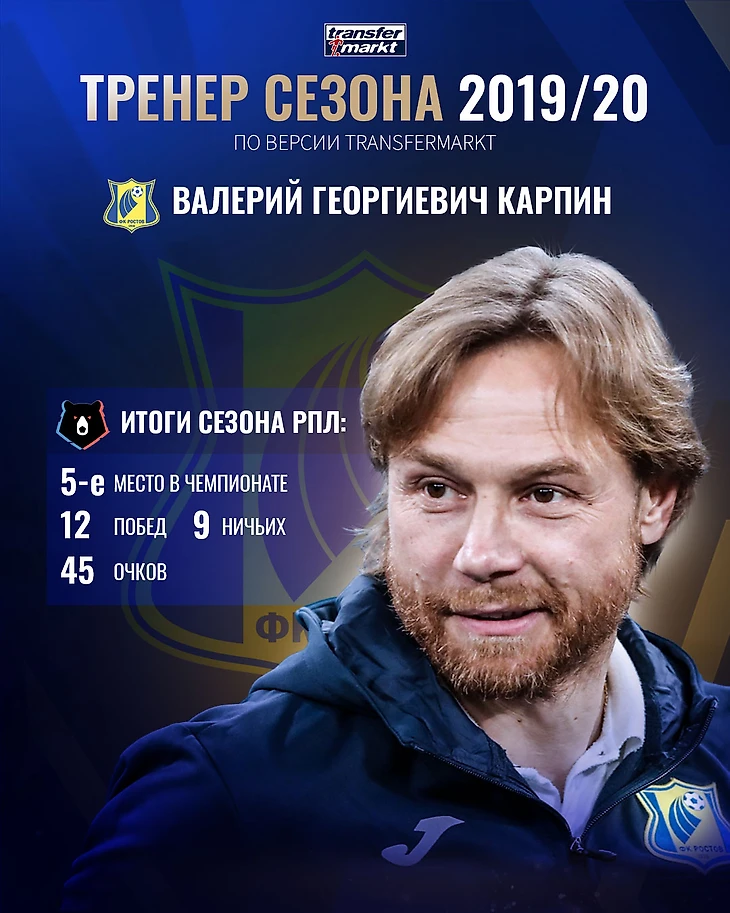 Тем самым, Валерий Георгиевич Карпин доказал всем окончательно, что он является одним из топовых специалистов отечественного тренерского цеха. Именно это и решила отметить редакция Transfermarkt.ru, признав Валерия Карпина лучшим тренером сезона 2019/20 в РПЛ.