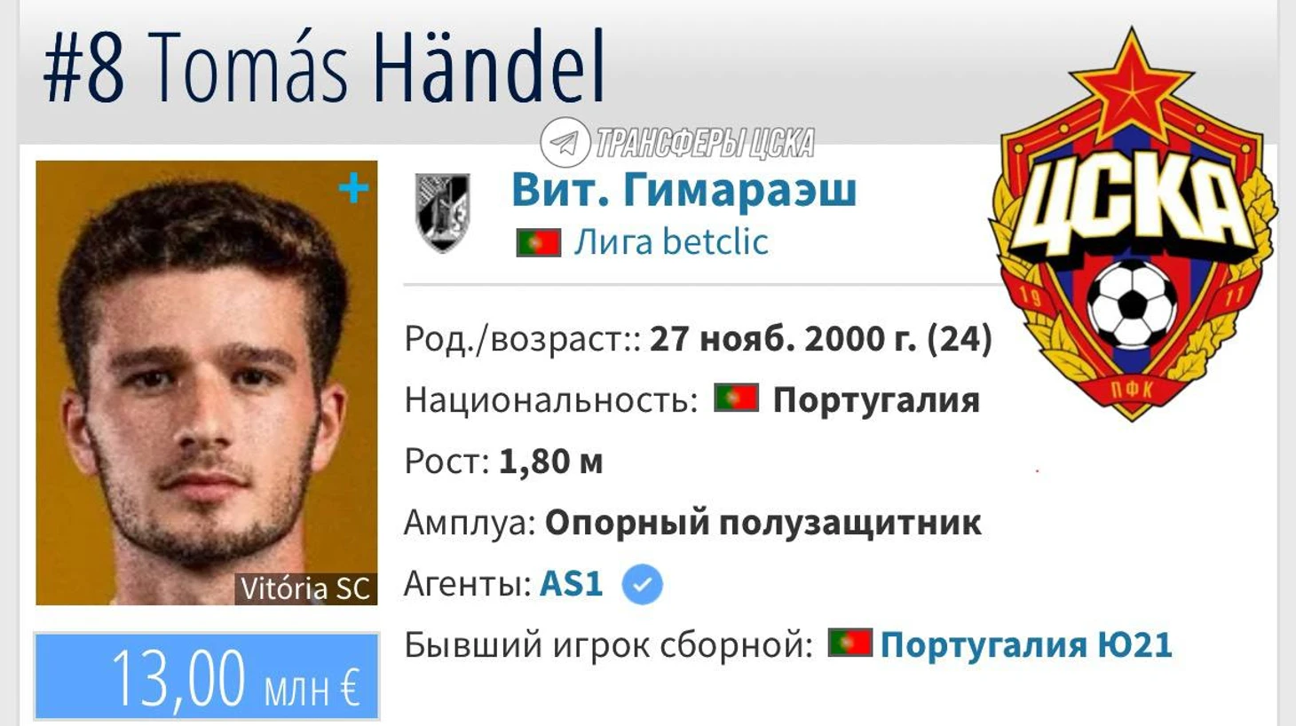 Согласно информации от Ивана Карпова, переговоры ЦСКА с «Виторией» по поводу Хенделя находятся на завершающей стадии. Если же эта сделка действительно состоится, то это будет отличное усиление для «армейцев», поскольку Томаш – игрок хорошего европейского уровня и продукт португальской футбольной школы. Он имеет в своем вооружении все качества для того, чтобы стать топом по меркам РПЛ: великолепное владение мячом, умение играть под высоким давлением, навык мгновенного принятия грамотных решений, анализ ситуаций и чтение игры – все на достаточно высоком уровне.