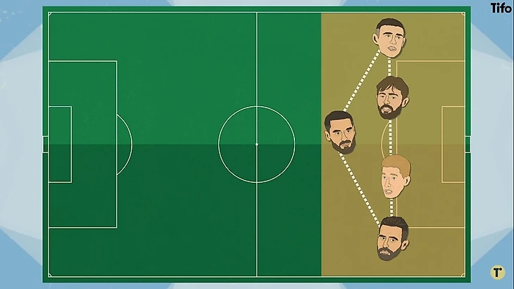 Вот почему у "Манчестер Сити" так много подобных друг другу игроков, с двумя ложными девятками, Пеп Гвардиола, включает Кевина Де Брюйне, Бернардо Силву, Илкая Гюндогана, Рияда Мареза и Фила Фодена в одной компании, которые могут меняться ролями, осуществляя это автоматизировано и чётко.