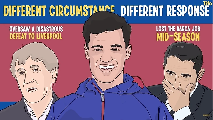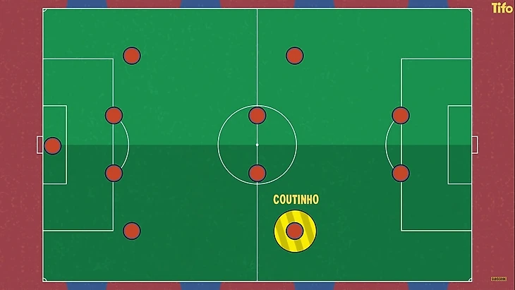 Итак, Барселона, к которой присоединился Коутиньо, находилась в переходном состоянии. Тренерский штаб и состав клуба претерпевали значительные изменения. В то время как Энрике играл по схеме Кройффа 4-3-3, Вальверде предпочитал более сдержанную 4-4-2 с более сбалансированным, более прагматичным и менее популярным стилем игры.