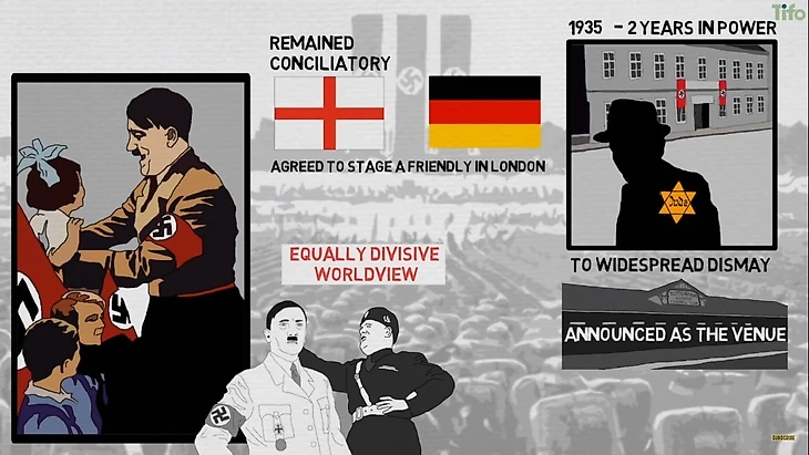 Всё это объясняется ростом полулярности фашизма, который в середине 30-х годов рассматривал футбольную игру как инструмент пропаганды. Корни этого идут от итальянского диктатора Бенито Муссолини, которого многие считают первым политическим лидером, признавшим манипулятивную силу 22 человек, гоняющихся за мячом на поле.