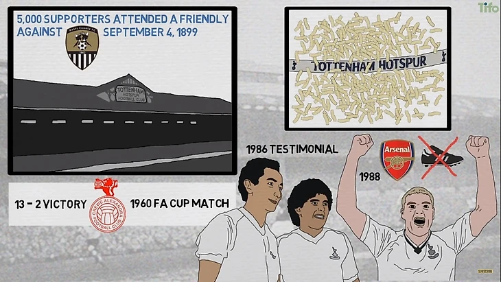 Победа 13:2 над Крю [Crewe Alexandra Football Club], в матче Кубка Англии 1960 года. Диего Марадона в рубашке с эмблемой шпор 1986 году. Пол Гаскойн, забивающий "Арсеналу" в 1988 году и потерявший бутсы. Восторженное прощание с этим стадионом, в конце сезона 2017 года.
