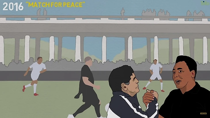 Они покинули сцену, казалось бы, в хороших отношениях. Но ссоры возобновились до "Матча за мир", прошедшем в 2016 году, где они снова обнялись и поклялись похоронить свою враждебность друг к другу. "Самое главное — это послание мира. Большое спасибо моему другу Марадоне за эту возможность и аплодисменты игрокам, которые были здесь сегодня", — великодушно сказал Пеле. "Это момент покоя и умиротворения".
