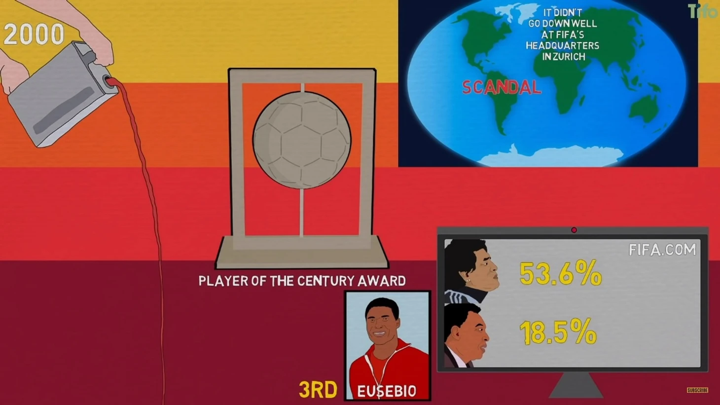 В 2000 году, масла в огонь подлила ФИФА, объявив о новой награде "Игрок века". Должно быть, в то время это казалось хорошей идеей. Победитель должен был быть определенным публичным голосованием через интернет-сайт FIFA.com, используя относительно новую на тот момент времени концепцию онлайн-демократии. Марадона набрал 53,6% голосов, а Пеле занял второе место с 18,5%. Эйсебио из Португалии стал третьим. Результатом стал скандал в Бразилии. В штаб-квартире ФИФА в Цюрихе в связи с этим также возникли проблемы.