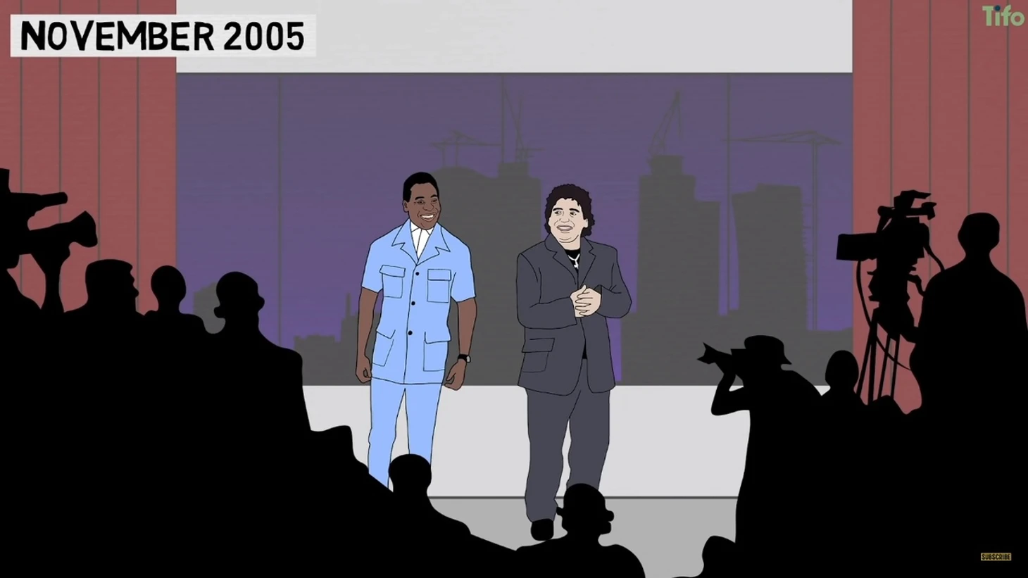 Диего Марадона и Пеле, бесспорно, одни из величайших игроков в истории футбола. У них также имелось постоянное соперничество, перемежающееся спорами и горечью и поддерживаемое эгоизмом и тщеславием. Перевод познавательного видео-материала о противостоянии Пеле и Марадоны, хронологии их уникальных и многолетних отношений.