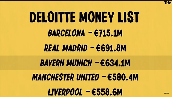 По оценке издания "Deloitte Money List" годовой доход Баварии в 2021 году оценивался в 634,1 млн евро, что было третьим по уровню, после Барселоны и Реала.