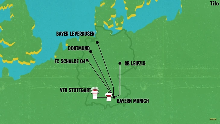 В результате, их внутренняя трансферная политика не только регулярно и качественно улучшает их состав, но и часто значительно ослабляет команды главных соперников. Трансферы Марио Гетце и Роберта Левандовски — явные примеры этого процесса, но за последние несколько десятилетий Бавария собирала талантливых игроков со всей Германии. Марио Гомес, Бенджамин Павар и Джошуа Киммих из Штутгарта. Лусио и Михаэль Баллак из Байер Леверкузен. Леон Горецка и Мануэль Нойер из Шальке. Летом 2021 года эта тенденция сохранилась: Дайо Упамекано прибыл на Альянц Арену из РБ Лейпциг.