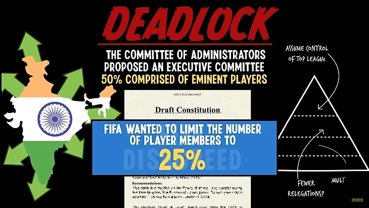 Возникли разногласия – в первую очередь в сфере представительства именитых игроков. В своем проекте конституции индийский Комитет администраторов предложил исполнительный комитет, состоящий на 50% из заслуженных игроков, ФИФА с этим не согласилась, сославшись на собственный устав, который ограничивает количество игроков в исполнительном комитете до 25%.
