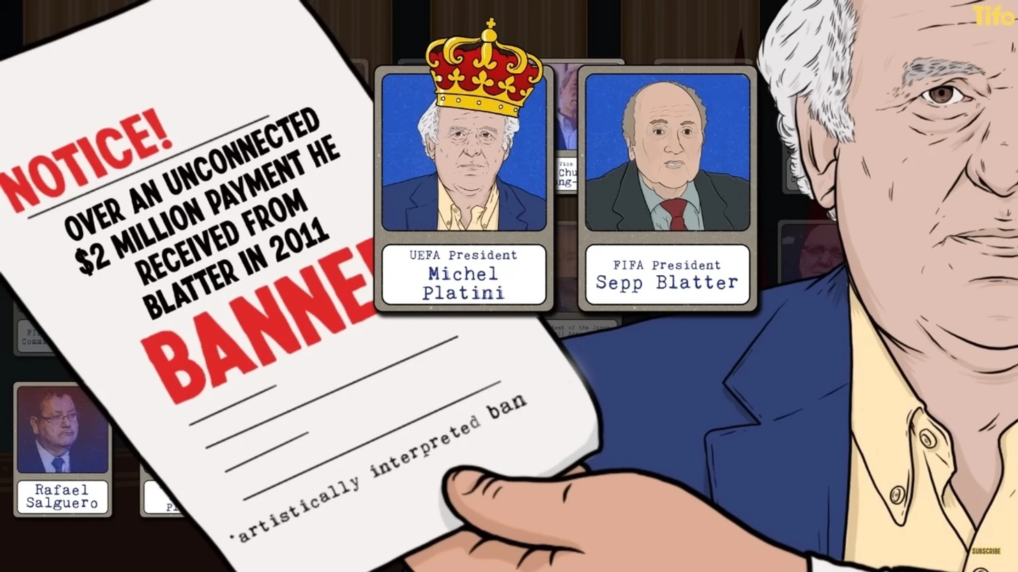Например, Мишель Платини позже был отстранен от футбола на четыре года из-за платежа в размере 2 миллионов долларов, который он получил от Блаттера в 2011 году, примерно в то время, когда Платини рассматривал возможность бросить Блаттеру вызов на пост президента ФИФА. Оба утверждали, что эта оплата была за работу, которую Платини выполнил несколько лет назад. Блаттеру из-за этого скандала также запретили заниматься футбольной деятельностью.
