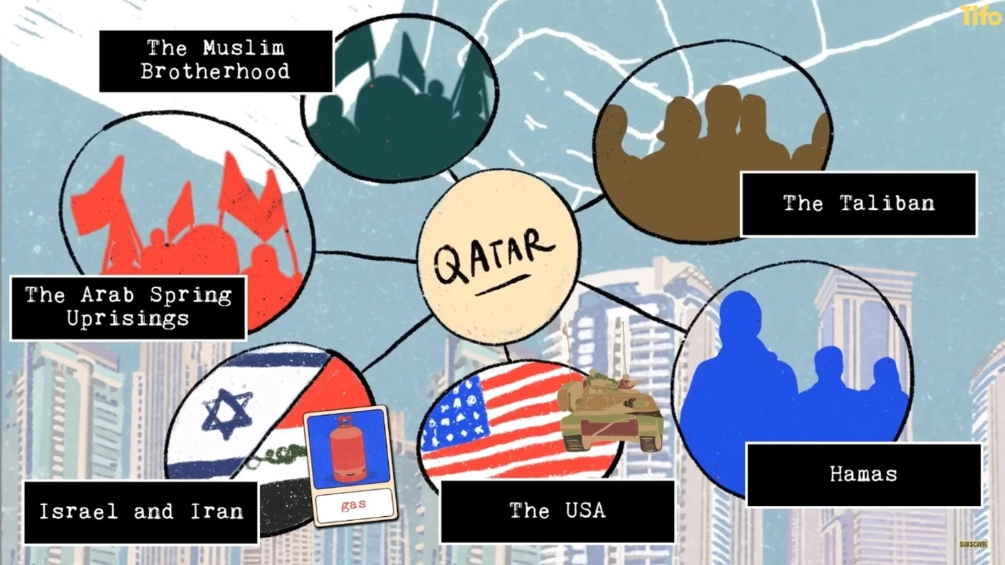 Арабская весна напугала крайне репрессивные арабские режимы Персидского залива, особенно Саудовскую Аравию, ОАЭ и Бахрейн, которые опасались, что они будут следующими, но не Катар. После более чем столетия в роли посредника и длительного процесса выживания между крупными региональными сверхдержавами и тогдашнего наследного принца, наблюдавшего, как Саддам Хусейн перемещался в Кувейт и Саудовскую Аравию, Катар сумел сбалансировать независимую внешнюю политику. Они широко поддерживали восстания «арабской весны», а также исламистские группировки, в частности «Братьей-мусульман». Талибан и ХАМАС разместились в Дохе. У них также были относительно хорошие отношения с Израилем и, что особенно важно, с Ираном, с которым они делят огромное газовое месторождение, хотя Иран также рассматривается как экзистенциальная угроза для своих соседей, как и Братство.