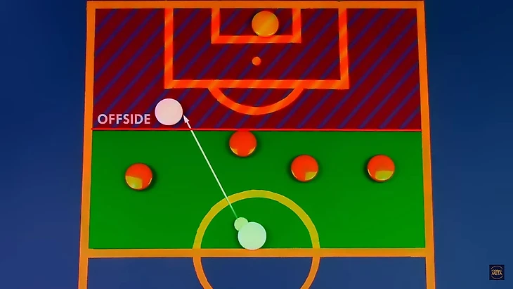 Таким образом, если нападающий находится за пределами защитника - в момент когда была сделана передача; но к тому времени, когда он получит мяч уже не за пределами защитника - то это все равно считается офсайдом.