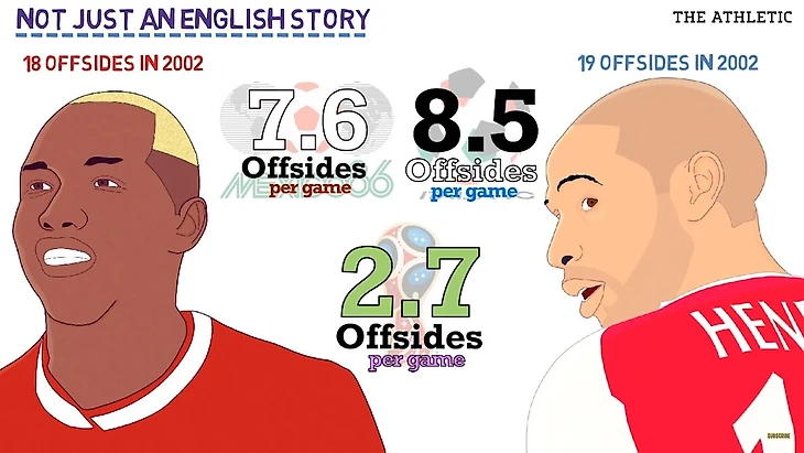 Стоит посмотреть на список игроков с наибольшим количеством офсайдов на любом чемпионате мира, где только двое из этого века - это Эль Хаджи Диуф с 18 попаданиями в положение вне игры в 2002 году и Тьерри Анри с героическими 19 - в 2006 году. Все остальные рекордсмены из 1960-х, 1970-х, 1980-х и 1990-х годов. Эти времена были золотым веком офсайда.