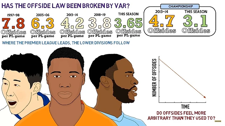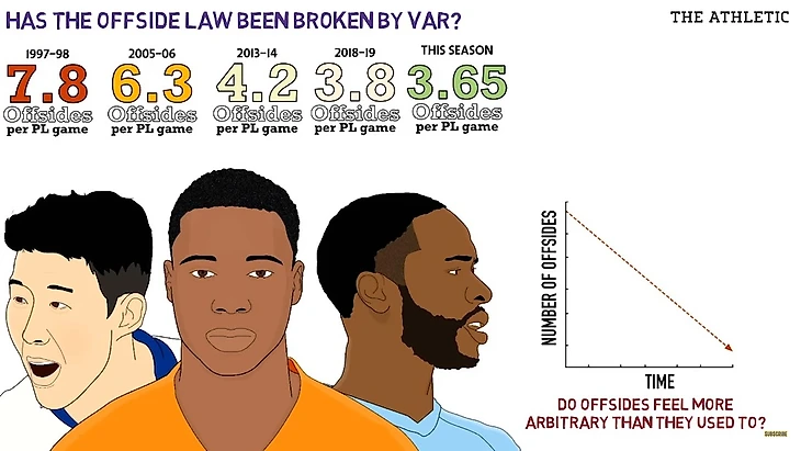 Это не просто английская история. На Чемпионате мира 1986 года в среднем фиксировалось 7,6 офсайдов за игру, в 1990 году — 8,5, а в 2018 году, на первом чемпионате мира с использованием VAR, — всего 2,7.