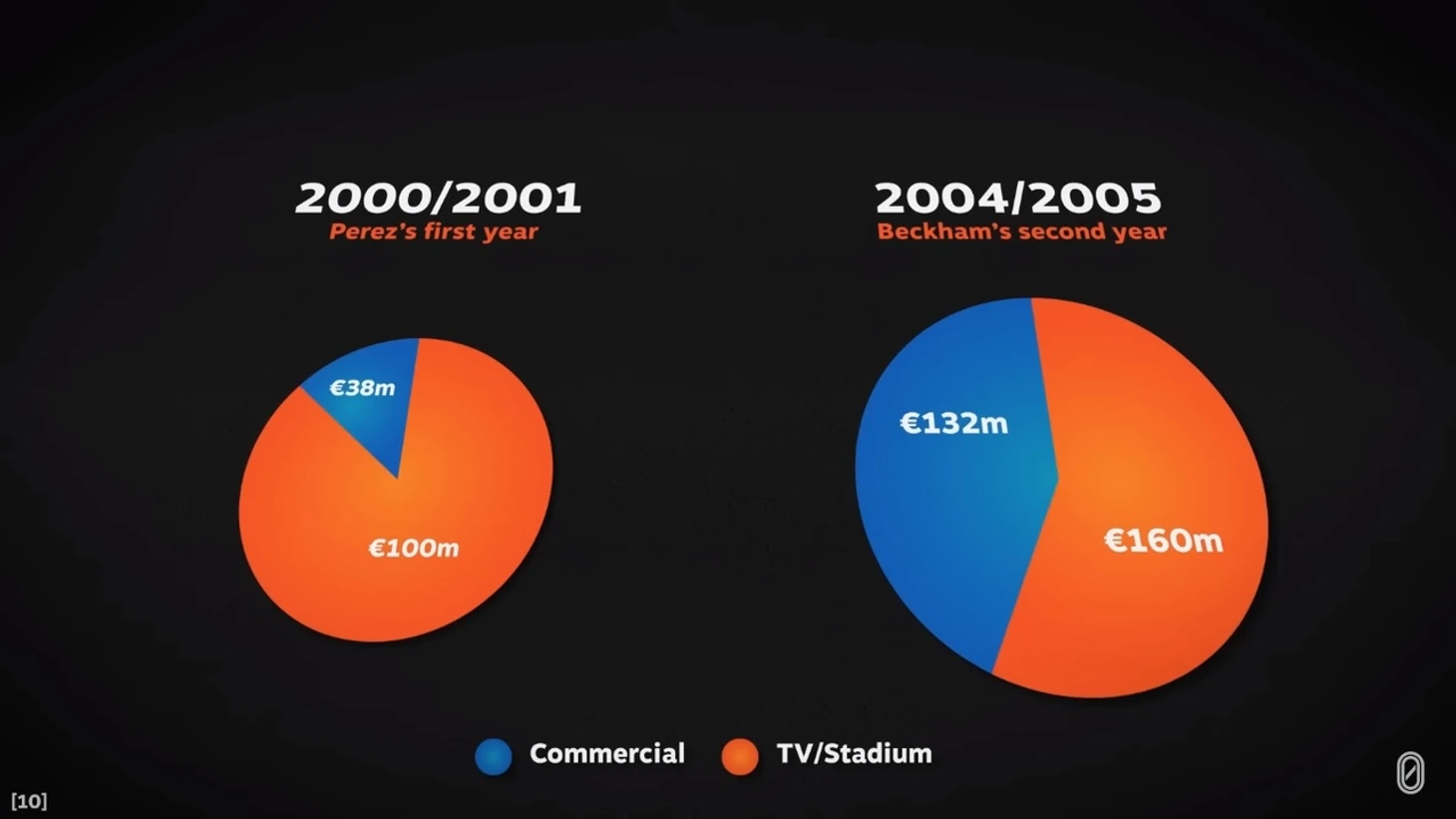 Бекхэм стал настолько неотъемлемой частью коммерческой привлекательности Мадрида, что Перес говорил о том, что прежде чем продать Бекхэма он продаст Сантьяго Бернабеу. То, что было верно для Бекхэма, было верно для каждого из Галактикос. Каждый из них принес новую аудиторию и коммерческие возможности.