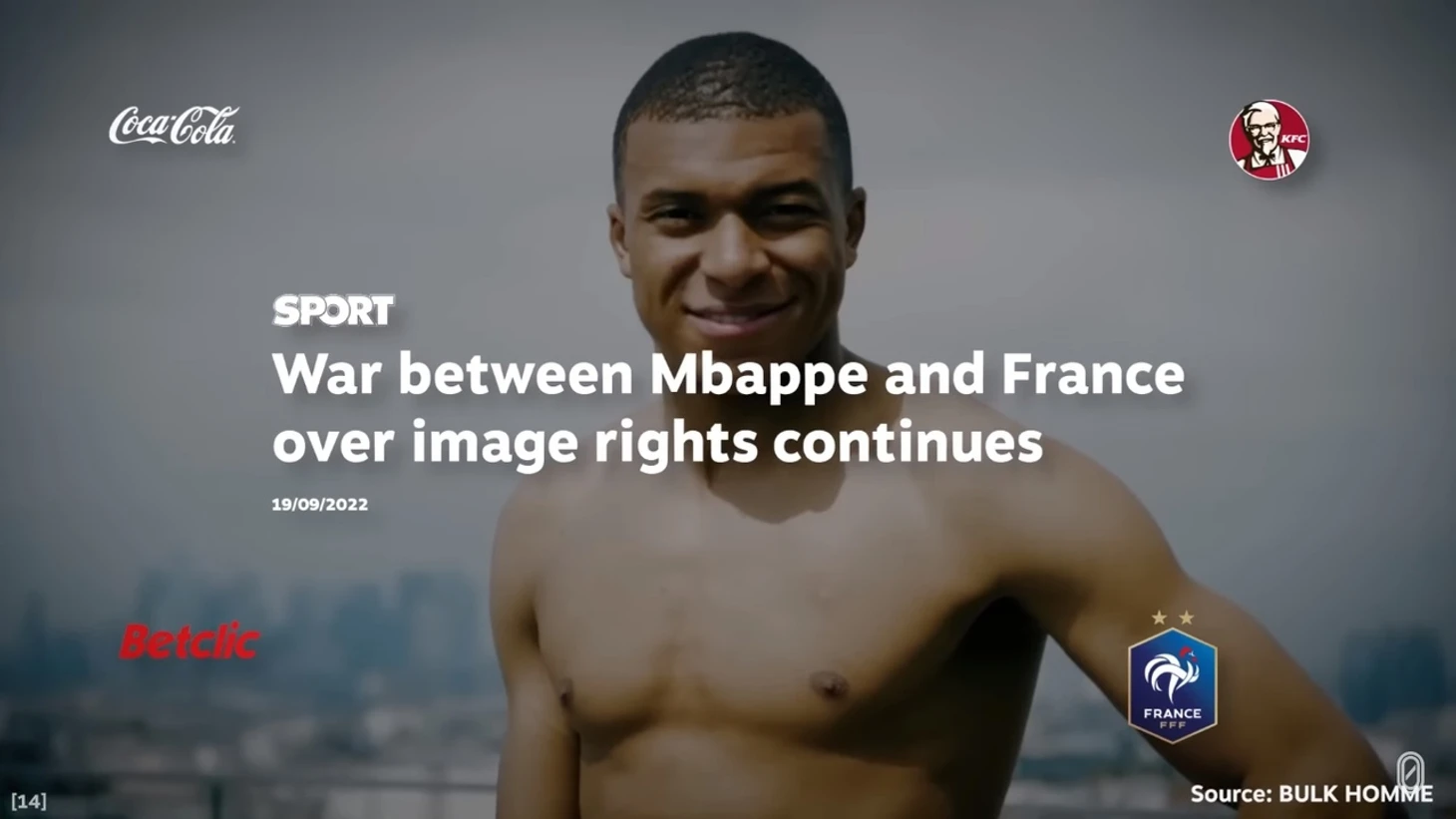 Вероятно, нет игрока, который заботился бы о своих имиджевых правах больше, чем Килиан Мбаппе. Несколько месяцев он вел спор с французской федерацией футбола. Мбаппе неоднократно отказывался принимать участие в фотосессиях под эгидой федерации, утверждая, что фото с указанными федерацией спонсорами (производителями газировок, "мусорной" еды) нанесет ущерб его личному бренду.