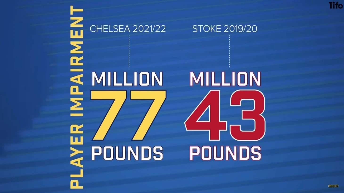 В сезонах 21/22 обесценивание игроков для "Челси" выросло до 77 миллионов фунтов, что является самым высоким показателем для клуба Премьер-лиги в любом из сезонов, при этом они лидируют с большим отрывом. Вторым является "Сток Сити" в 2019-20 годах - 43 миллиона фунтов.