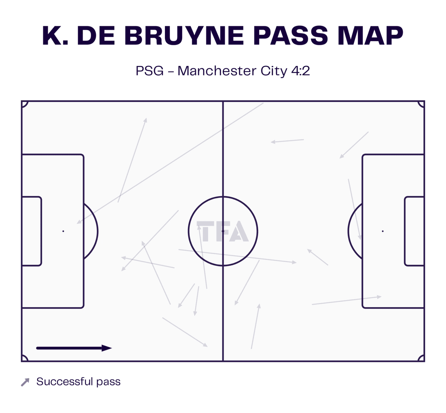 Ключевые игроки демонстрировали разную игру в двух таймах. Так, Кевин Де Брюйне, который сыграл важную роль в первом тайме, старательно пытался оказывать такое же влияние во втором. Это отражало изменение импульса и тактического ландшафта игры. Полузащитники «ПСЖ» плотно опекали его, из-за этого он не мог найти пространство, которым он наслаждался в первом тайме.