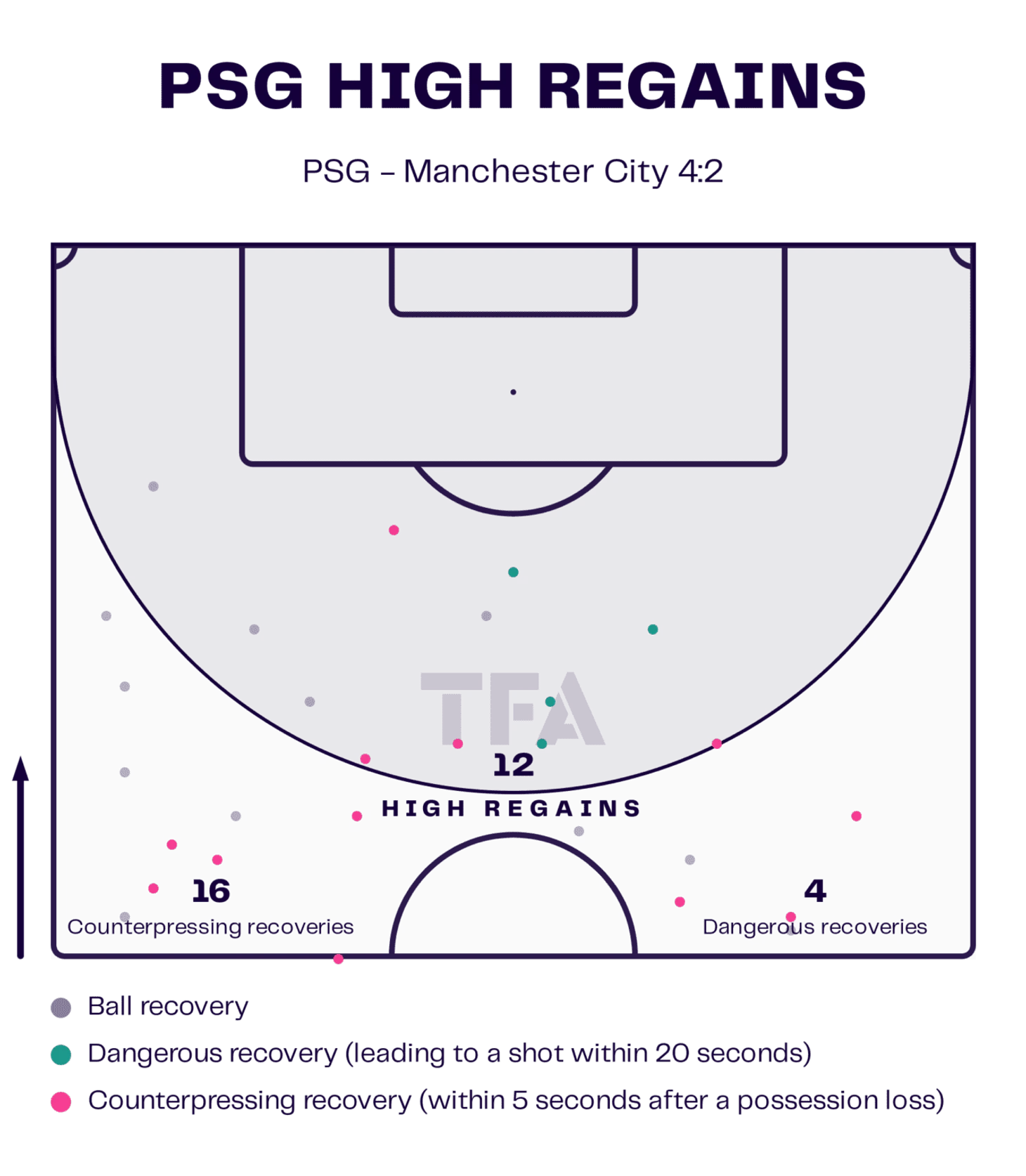 "ПСЖ» внесли тактические коррективы во втором тайме, что застало «Манчестер Сити» врасплох. Они изменили формацию, прессинг стал выше, давление больше. Они были активны и агрессивны, в отличие от первого тайма. С другой стороны, «Манчестер Сити», которые с трудом приспосабливались к этим изменениям. Неспособность приспособиться к ситуации стала ключевым фактором поражения горожан.