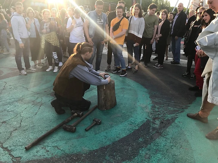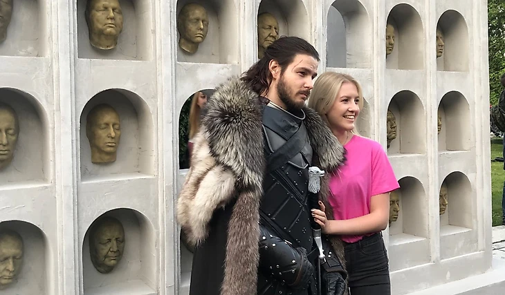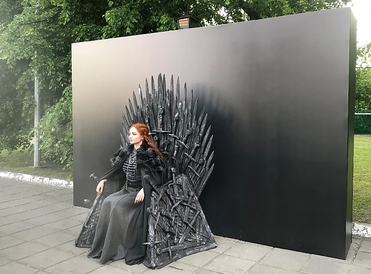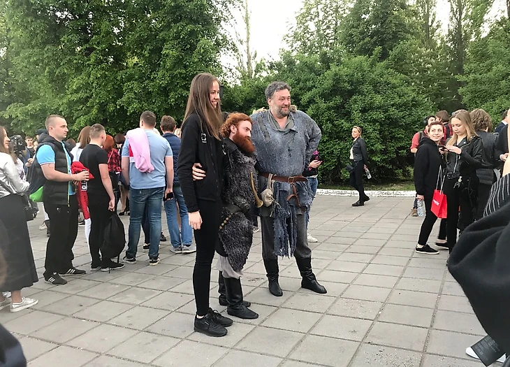 Аттракцион «стена с безликими» и главный объект — железный трон — разместили с краю, сильно левее центра. Наконец первые костюмированные актеры: Джон Сноу старательно хмурит брови в эмоции «Ничего не знаю», надменная Дейнерис, красивая Санса, одинокий Ходор, похожий на экс-мужа Собчак (Максима Виторгана). И внезапно низенький как Тирион Тормунд, напоминающий гнома из «Хоббита».
