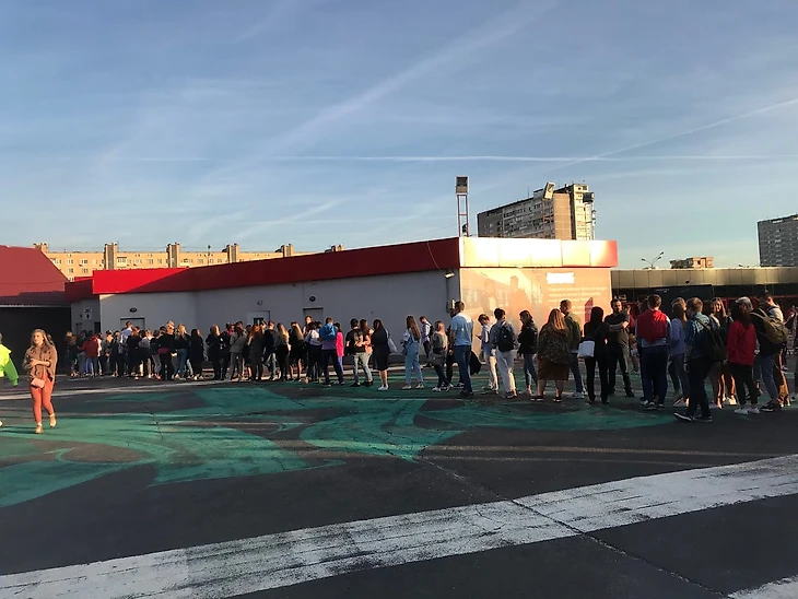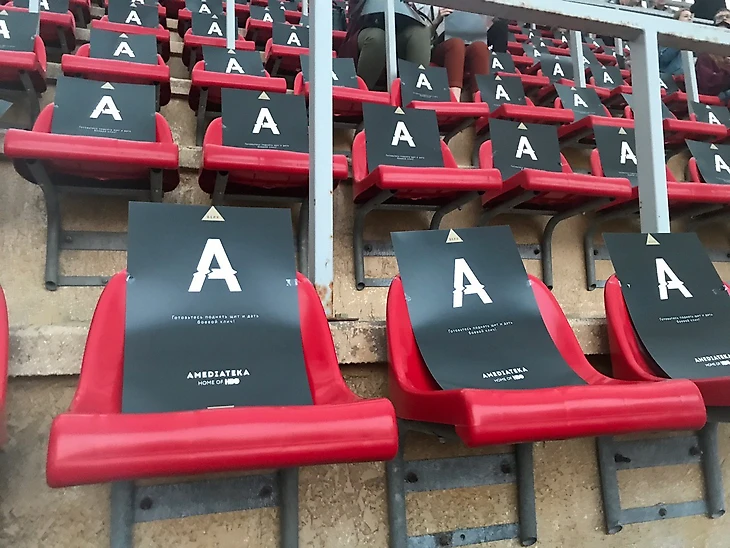Важное уточнение про время, оно еще пригодится: на пригласительных написали, что начало в 19:00. Многие уже без пятнадцати семь нервно покачивались в очередях, потому что думали, что в это время начнется показ. Я тихонько залезла на сайт Амедиатеки и узнала грустную правду — старт серии в 21:30, до тех пор гостей будут веселить на территории стадиона. Это, разумеется, провал: все условия, весь «мелкий шрифт», все, на что подпишутся люди за деньги, надо выносить на первую страницу, принтить жирным шрифтом, объяснять заранее.