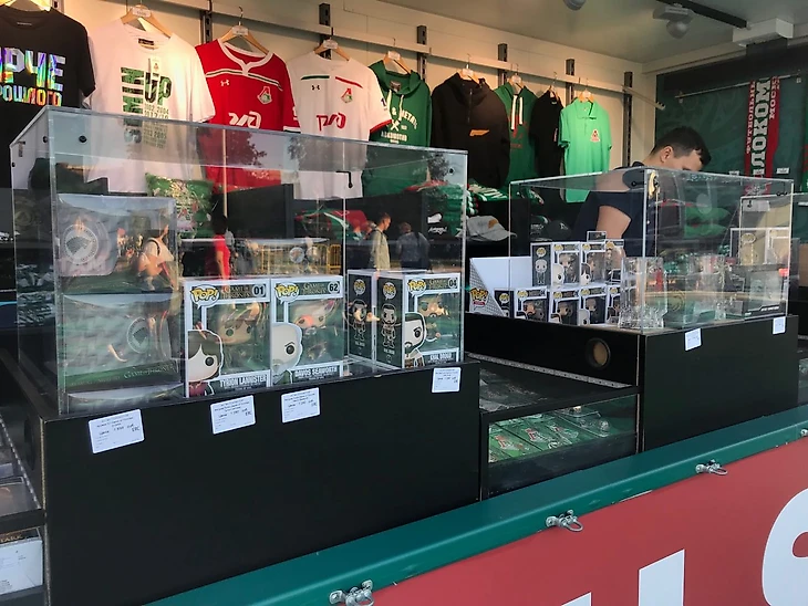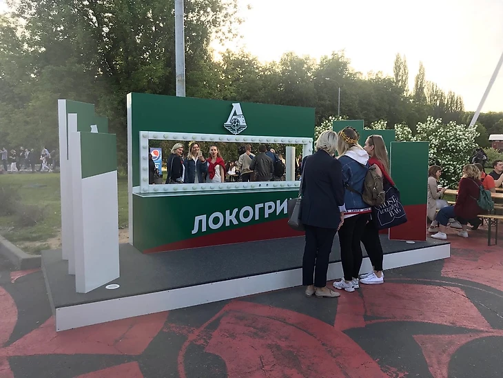 Кинулась искать чек-поинты «Локомотива»: вот паровоз (почему из него не сделали дракона?! Зато спонсорскую тачку рядом проапгрейдили), вот палатки с мерчем — к ним и пошла. В единственном месте без очередей джерси клуба на заднем фоне оттеняли ряды кружек и фигурок с персонажами сериала.