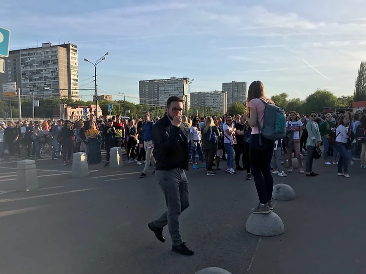И снова косяк: мы каждый раз старательно вытягивали картонки вверх и вопили самый странный девиз в сериале, а волонтеры никак не поясняли, был ли это сейчас прогон или все, реальный флешмоб. В итоге к настоящему дублю интерес многих подрассеился.